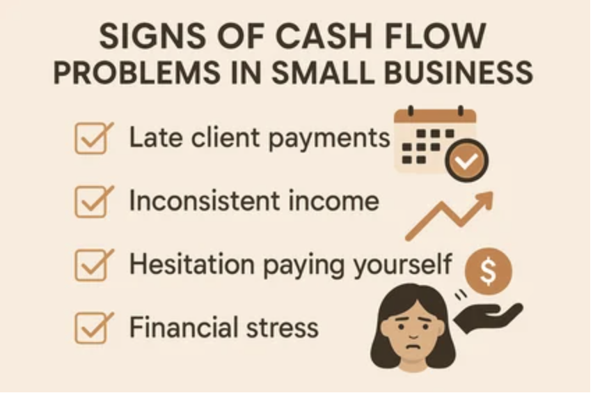 Cash flow problems don’t always show up as empty bank accounts. More often, they show up as hesitation and stress. You might find yourself second‑guessing whether you can pay yourself, relying on the next invoice to cover current bills, or feeling like one slow month can throw everything off.